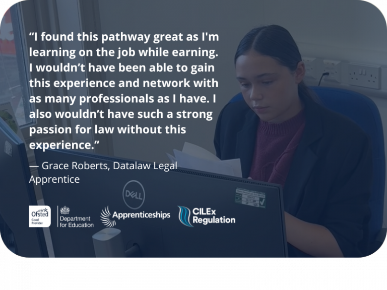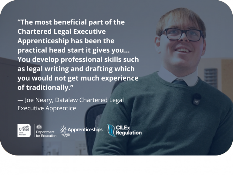 Advance your legal career with Datalaw’s Chartered Legal Executive Apprenticeship, a fully funded, supported route for professionals seeking practice rights in their chosen area of law. Through workplace learning and flexible online study, this CILEx Regulation-approved programme develops the competence and practical capability needed for authorised legal practice.